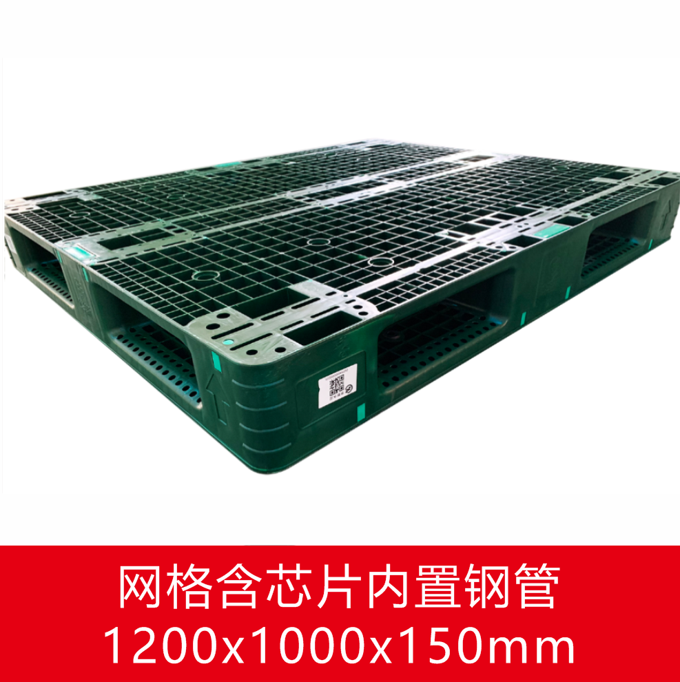 网格塑料托盘 动载载重达2吨,静载载重达6吨,具备承重能力强、抗冲击性、耐腐蚀性、低摩擦系数等优质性能,可循环使用36个月及以上。内置芯片是物流信息的智慧载体,可实现数据自动化采集,提升货物周转速度与库存管理的精准度。